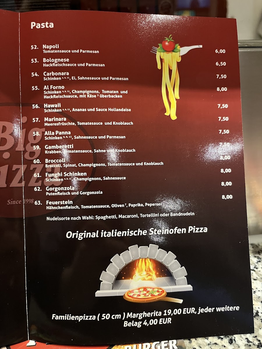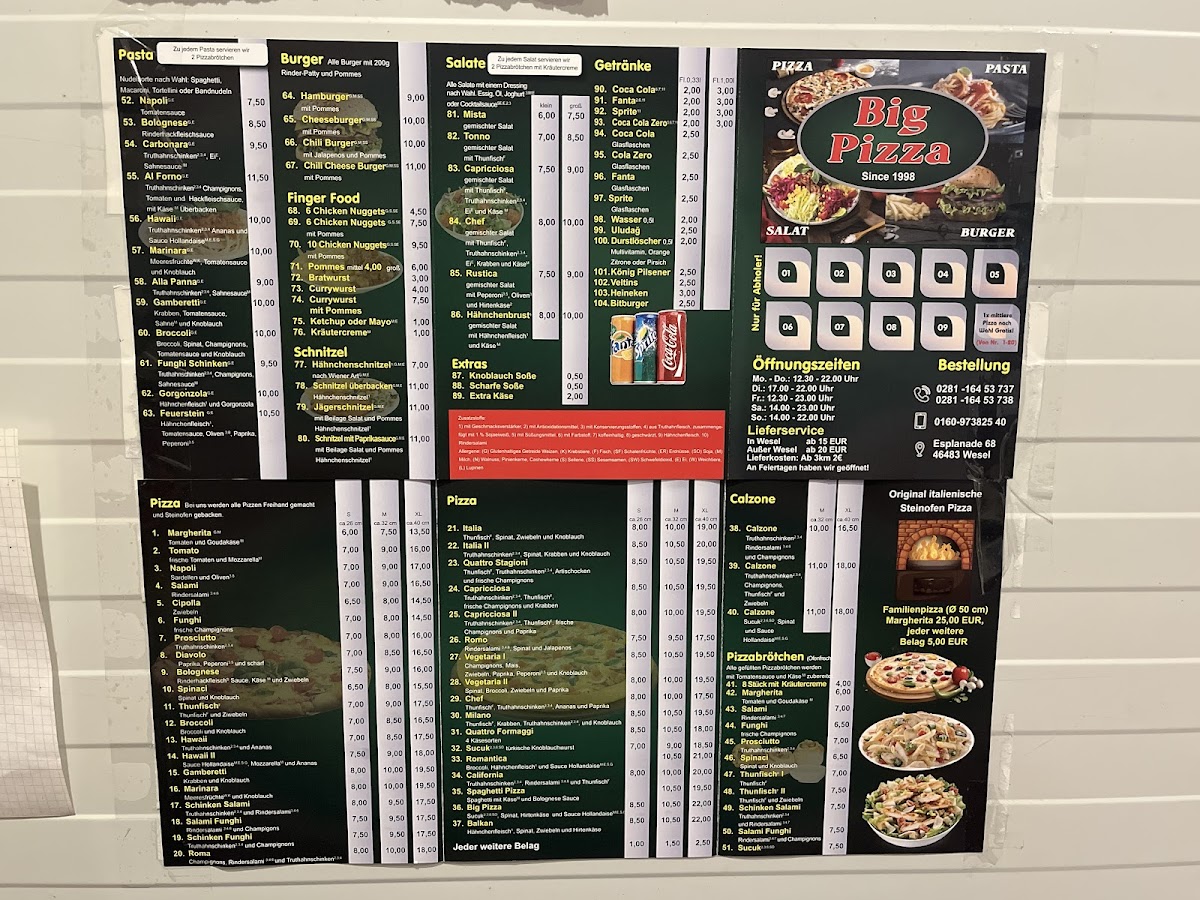 One of the highlights of Big Pizza is their commitment to customer satisfaction. Patrons have praised the friendly service, with staff going above and beyond to ensure every order is delivered hot and fresh. With a focus on quality ingredients and fair prices, Big Pizza stands out in the competitive pizza scene of Wesel. Whether you're in the mood for a classic pizza or a fresh salad, Big Pizza promises a memorable dining experience. Dive into their menu, and you'll see why it’s quickly becoming the go-to spot for pizza lovers!